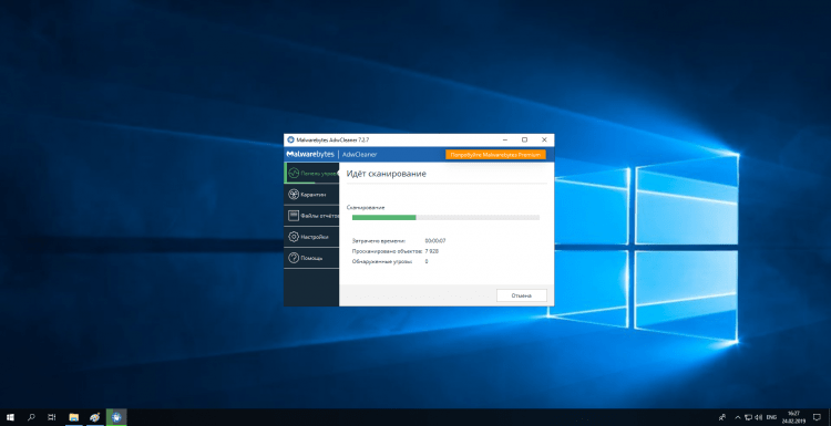 Здесь хотел бы остановиться поподробнее, так как это не совсем обычный антивирус, в нашем привычном понимании. Данная программа нацелена на удаление различных рекламных банеров, всплывающих окон и прочей ерунды, которую в основном антивирусы игнорируют. Если вы столкнулись с подобными проблемами, то настоятельно рекомендую вам проверить свой компьютер с помощью этой утилиты, но помните, она не является полноценным антивирусом.