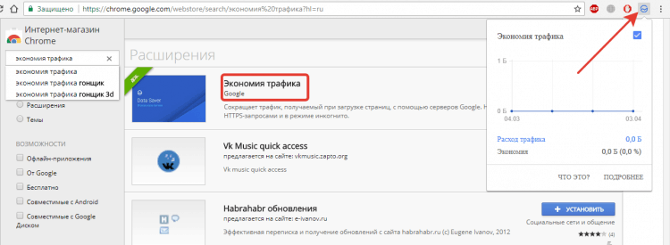 - Найдите и установите расширение «Экономия трафика» от разработчика Google.