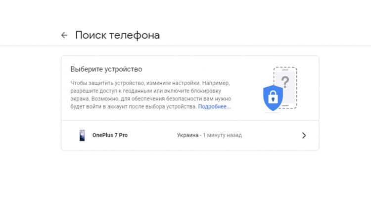 Также в этом месте можно прозвонить на смартфон, заблокировать его или полностью очистить данные на нем.