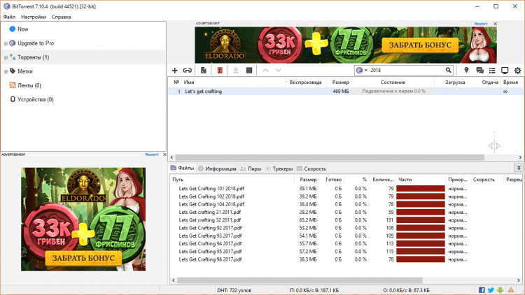 Классический торрент-клиент разработан командой мастеров пиринговой сети BitTorrent и доступен в нескольких вариантах – бесплатный базовый и платное ПО, свободное от рекламы, с функцией проверки файлов на наличие вредоносных программ и так далее. Представленный продукт поддерживает мультиязычный интерфейс (русский язык включительно) и ряд других функций.