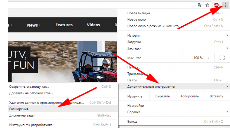 - Заходим в настройки → Дополнительные инструменты → Расширения