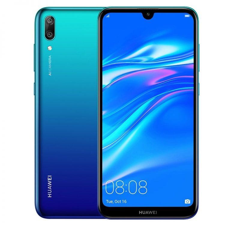 - Huawei Y7 обладает безрамочным дизайном, а на его задней панели располагается сканер отпечатков.